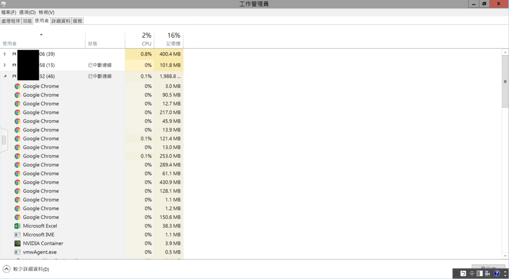 我們竟然能夠看到所有的使用者,而且連他開的程式都能一清二楚的看到。