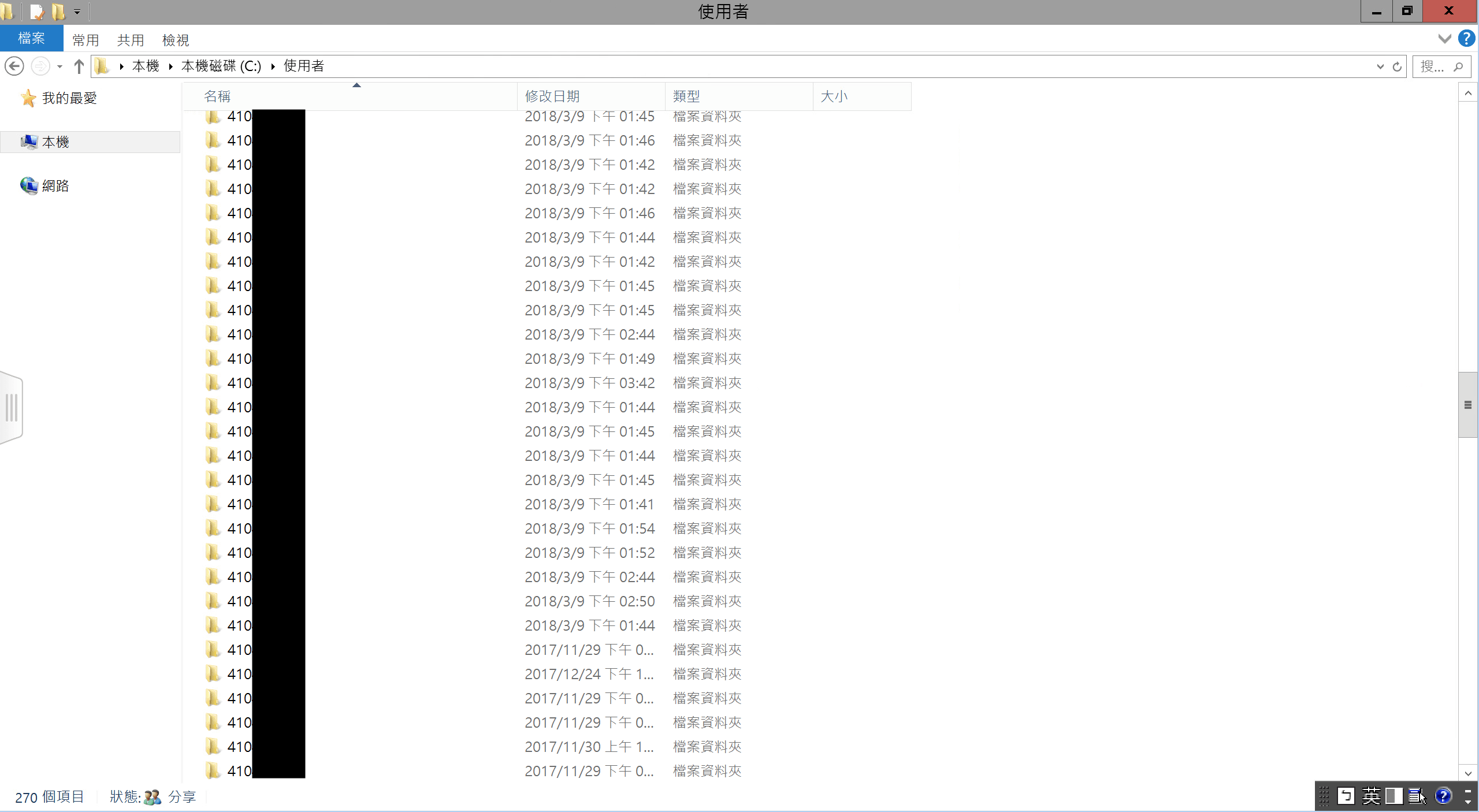 接著我們開啟檔案總管,尋找 C 槽的 Users 資料夾,所有人的資料夾一覽無遺。