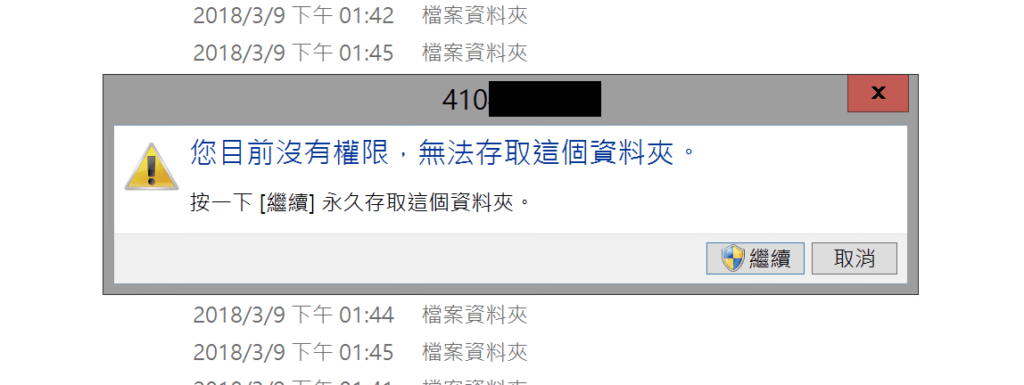 但,當我們按下繼續時,本以為會跳出要求輸入系統管理者密碼之類的提示框…