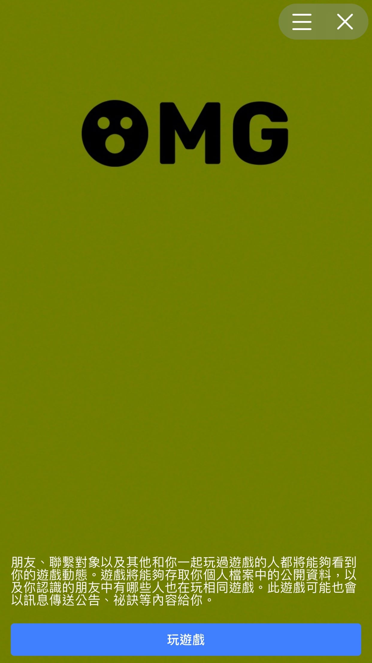在玩 OMG 遊戲前的授權畫面。(擷取自 Facebook)